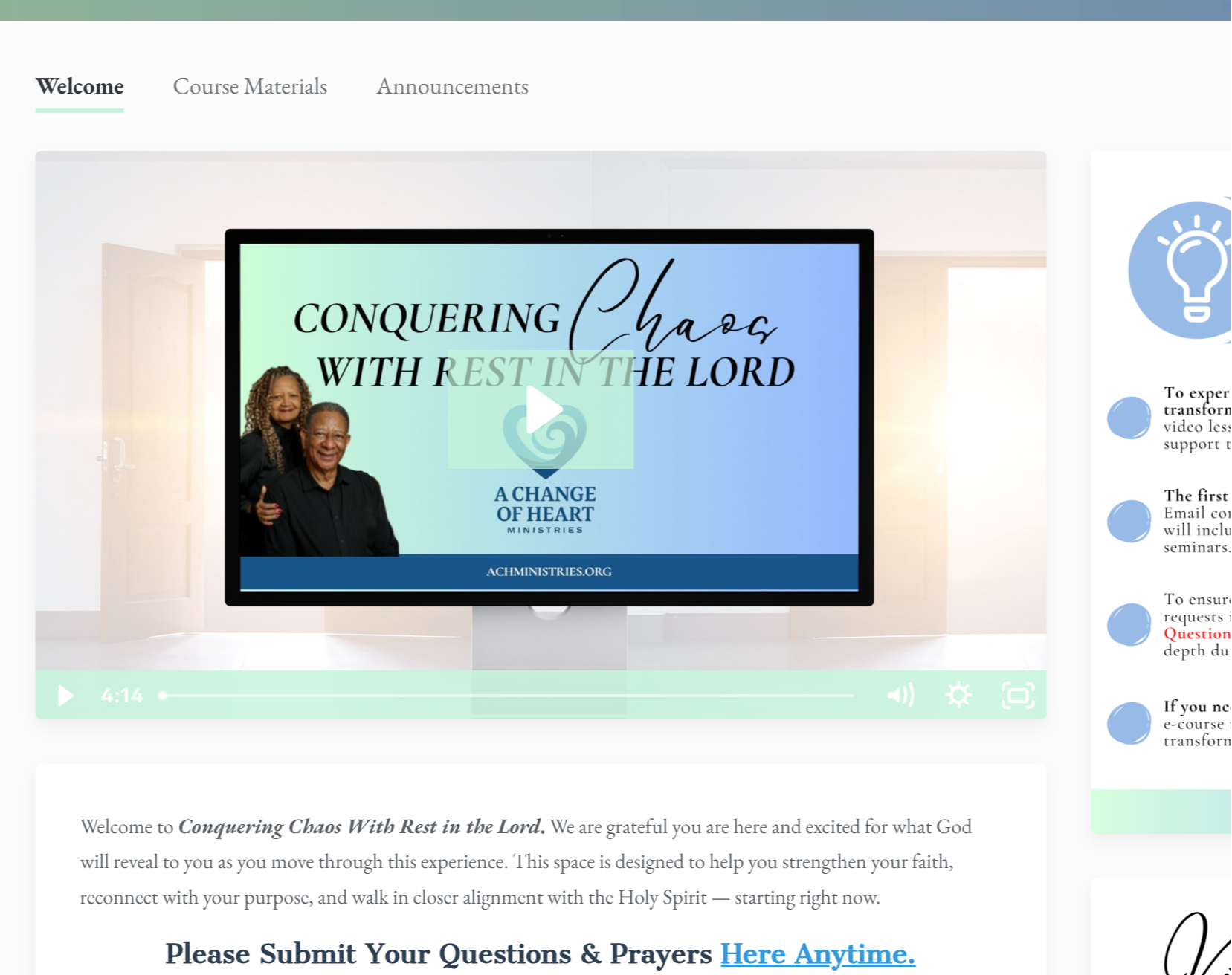 A Change of Heart Ministries, Inc. has created an online course for believers of God who desire a private and non-judgmental space to grow their faith and overcome strongholds.